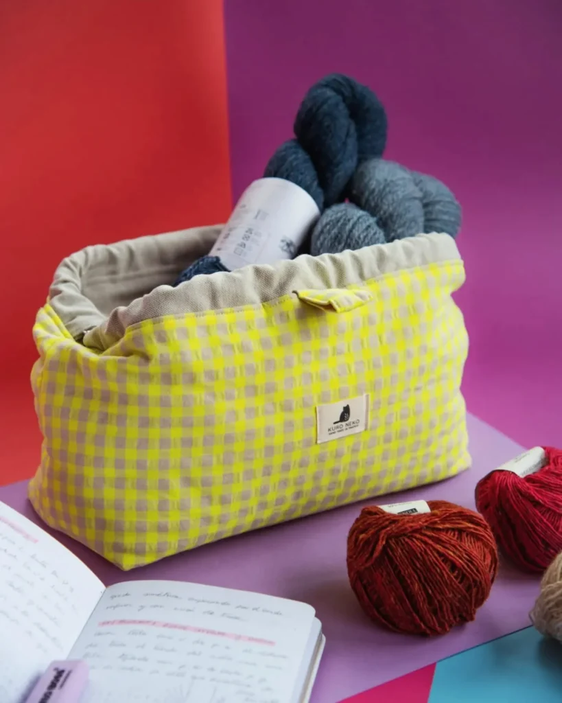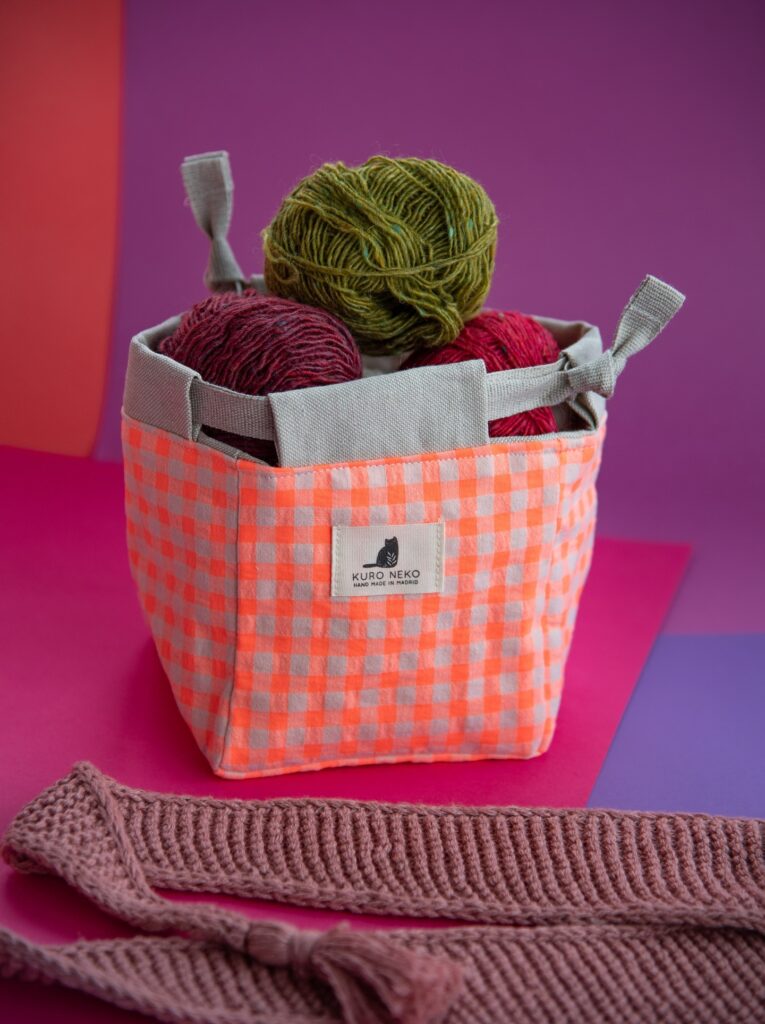Completa tu kit con bolsos y complementos de tela creados a mano: portaovillos, marcadores, botones, cajitas y pequeños accesorios que hacen tu día a día más fácil. Piezas prácticas y bonitas, perfectas para organizar tus herramientas y mantener tu proyecto siempre a punto, con ese toque artesanal que define a KURO NEKO.